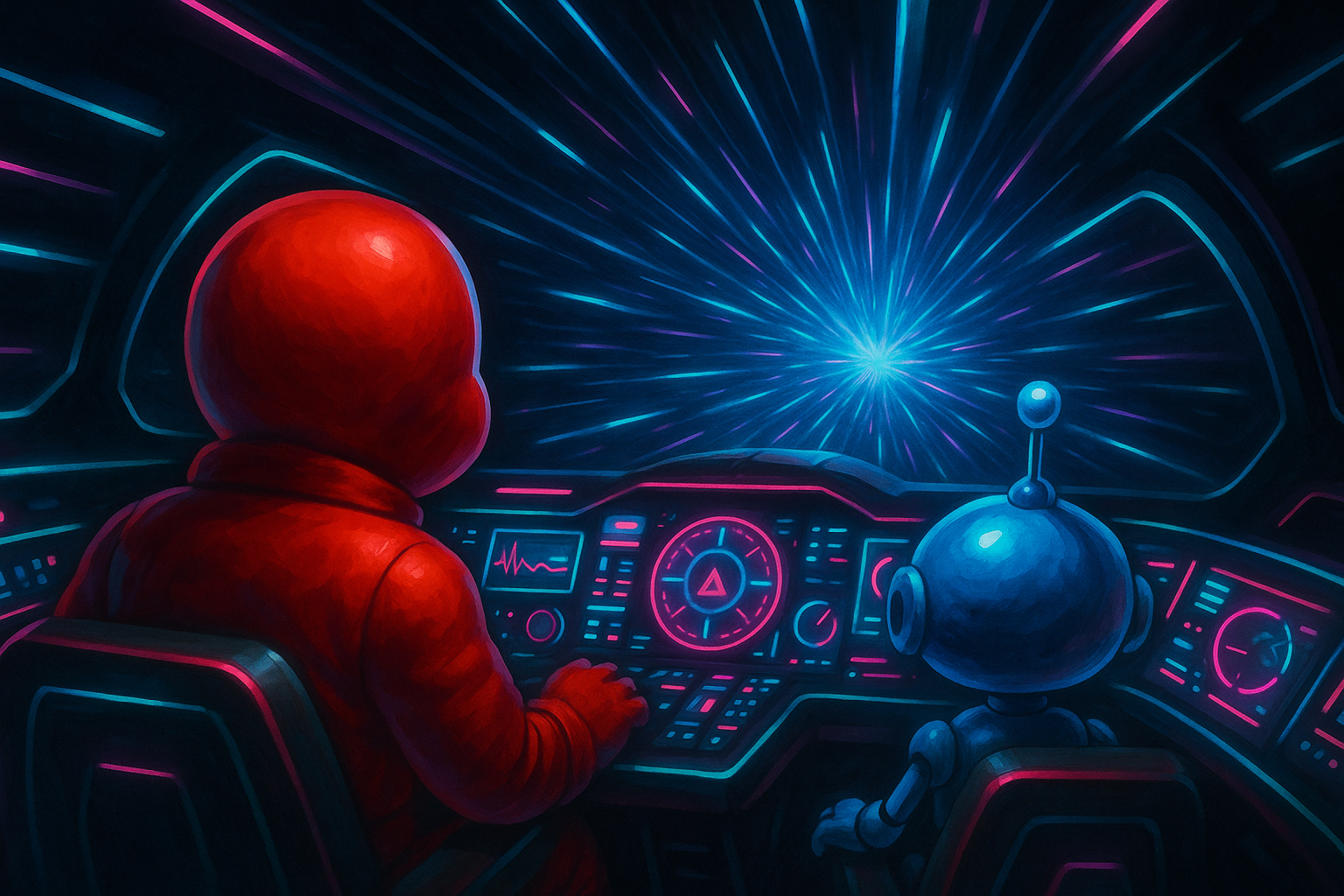Flynn & Fizz entering light speed, leaving their Cyngus Constellation Adventures. 1st timeline, 3000 BC (Faceless Collection)